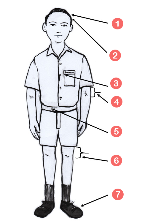 - பள்ளி பேட்ஜ் பாக்கெட்டின் வலது விளிம்பில் தைக்கப்பட வேண்டும்.